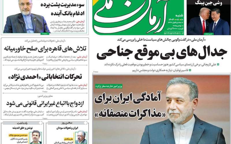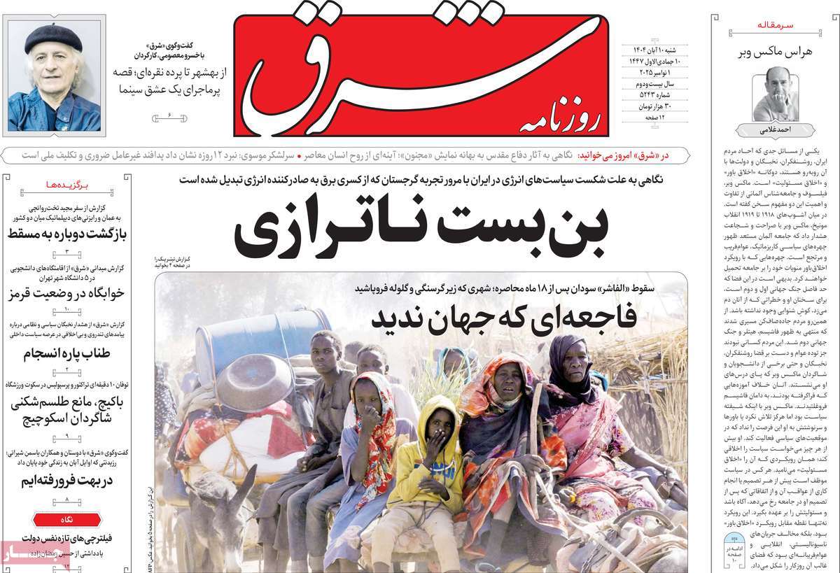 صفحهنخست روزنامههایشنبه 10 آبان