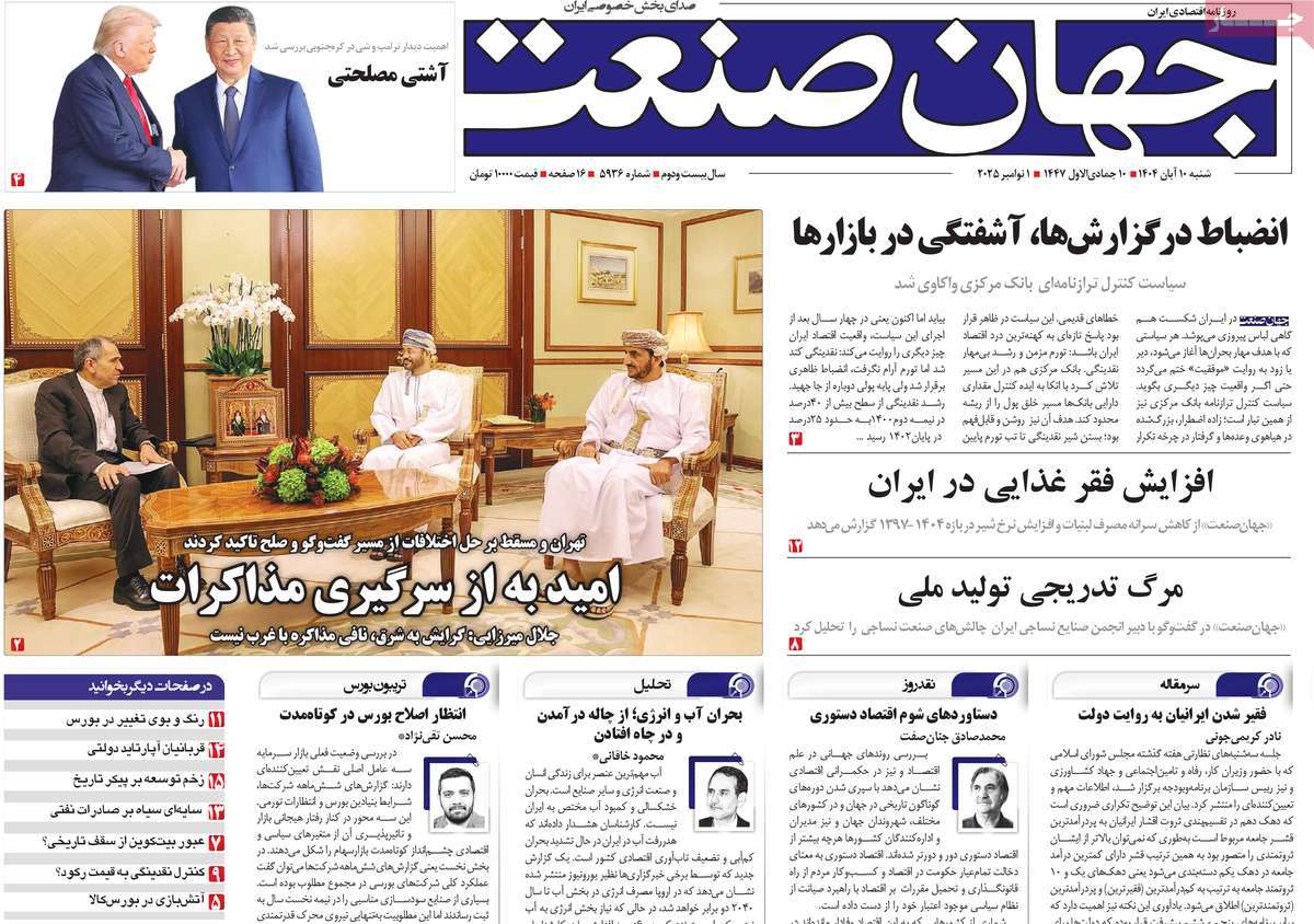 صفحهنخست روزنامههای یکشنبه 18 آبان