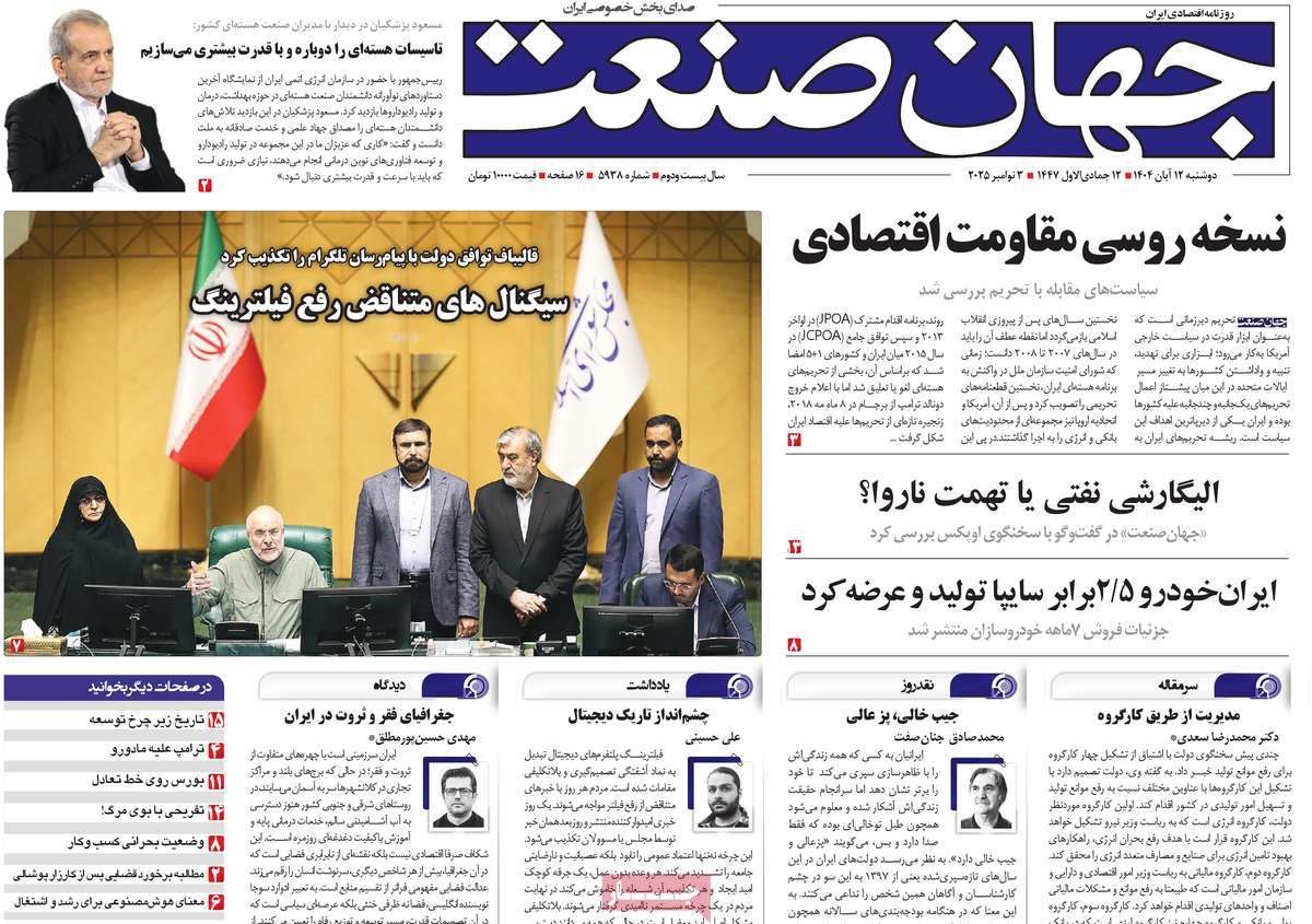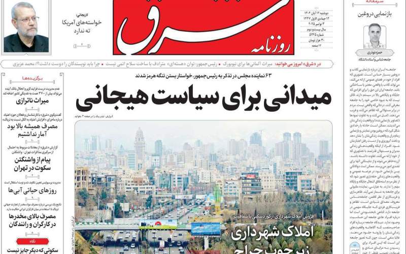 صفحهنخست روزنامههای دوشنبه 12 آبان