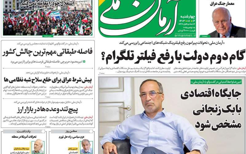 صفحهنخست روزنامههای چهارشنبه 14 آبان